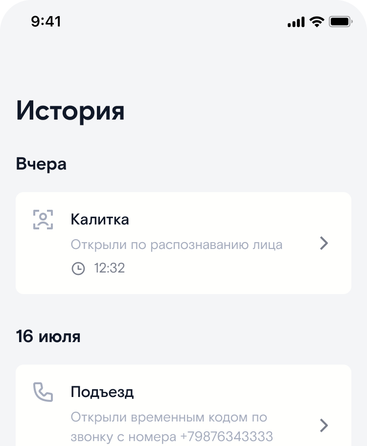 - история событий с домофона