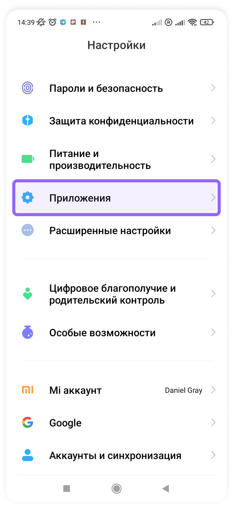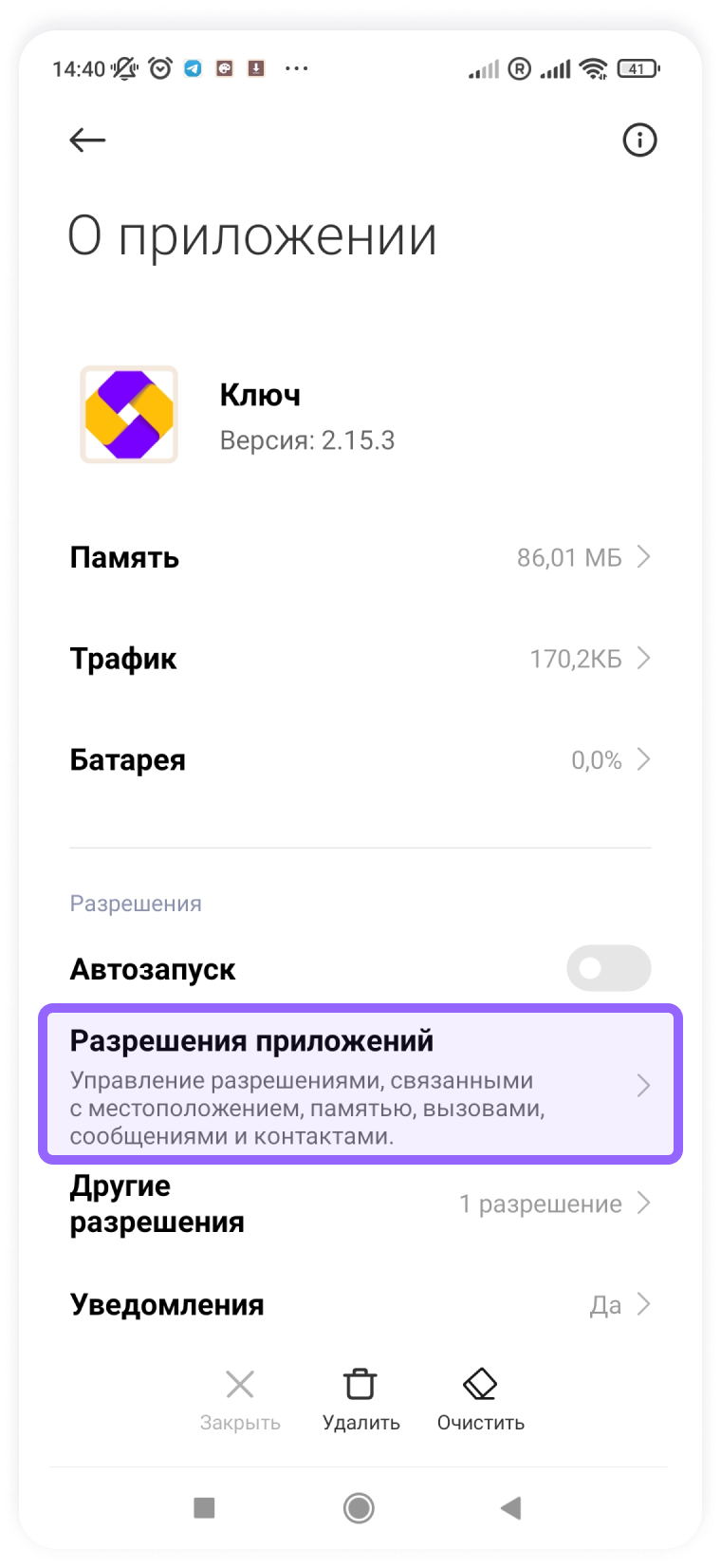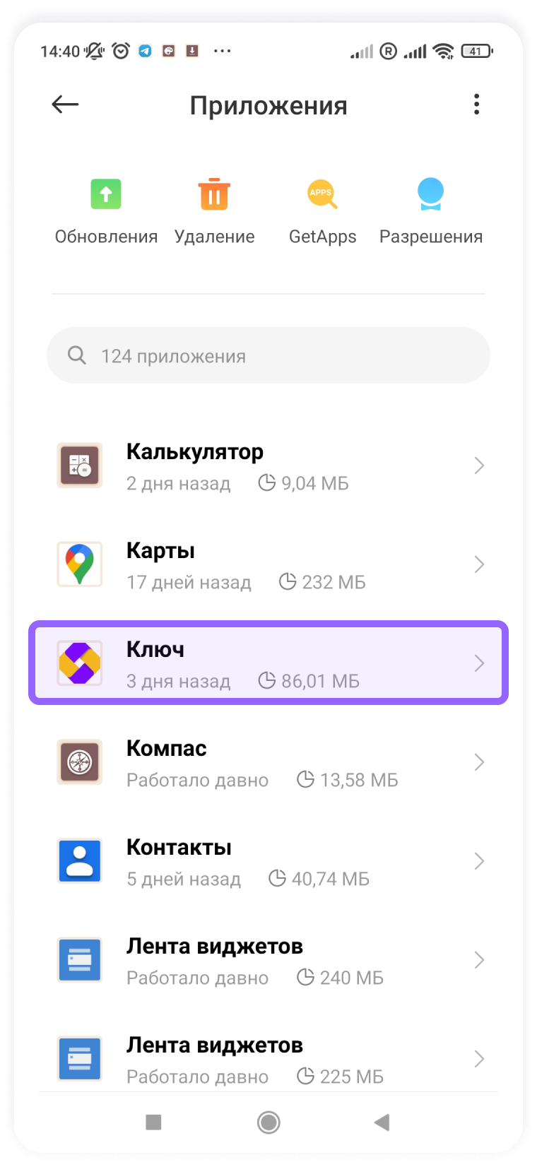 Откройте настройки телефона и перейдите в раздел «Приложения». В списке всех приложений найдите «Ключ».